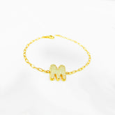 سوار حروف من الفضة بحجر أبيض، سوار مخصص