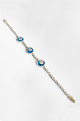 سوار سلسلة فضية مرصع بخرز عين الشر بثلاث مينا