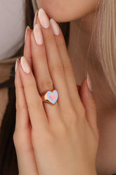 خاتم من الفضة الإسترلينية على شكل قلب بدون حجر مطلي بالمينا بألوان قوس قزح