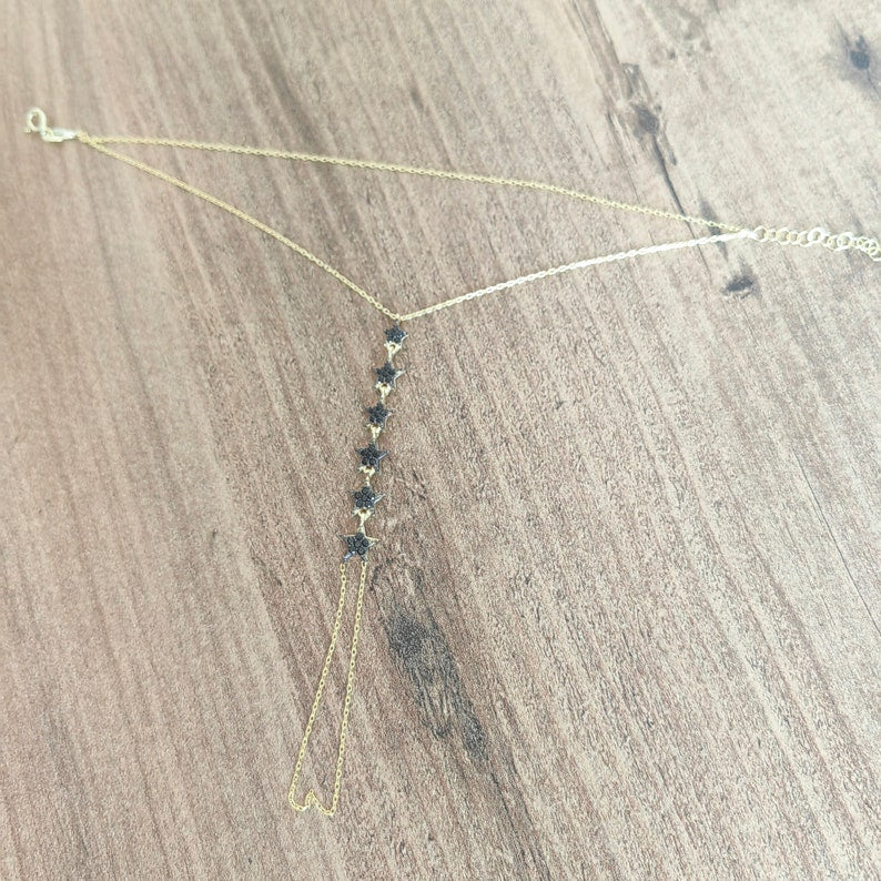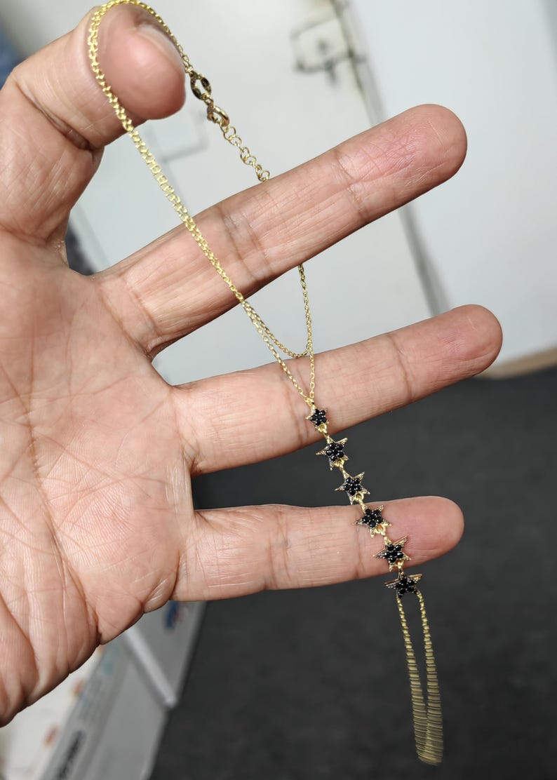 Black Stone Lined Star Silver Sahmaran, Delicate Ring Bracelet | Dainty Ring Bracelet | Gold Finger Bracelet | Delicate Hand Jewelry Slave