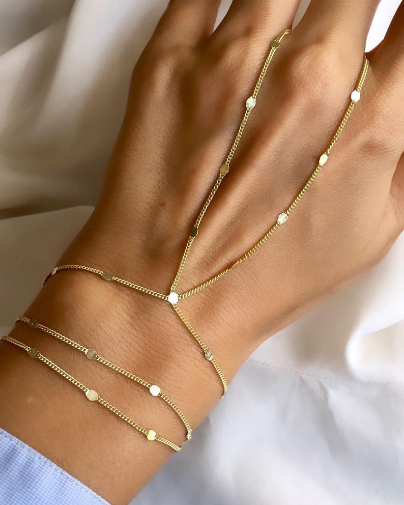 925 silver Hand Chain Slave Adjustable Bracelet Jewelry 14K solid Gold For Her Gift Birthday Bridesmaid Noel Gift, Crushed Corner Sahmeran