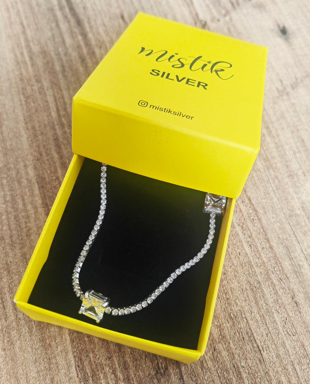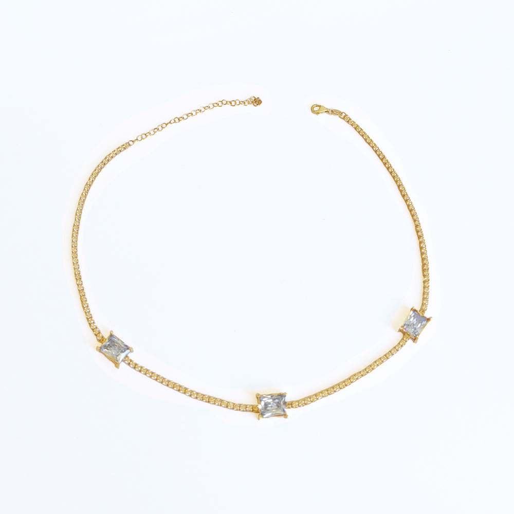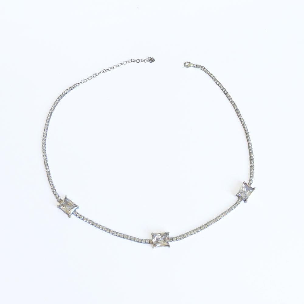 3 Rectangle Stone Tennis Chain Sterling Silver Necklace