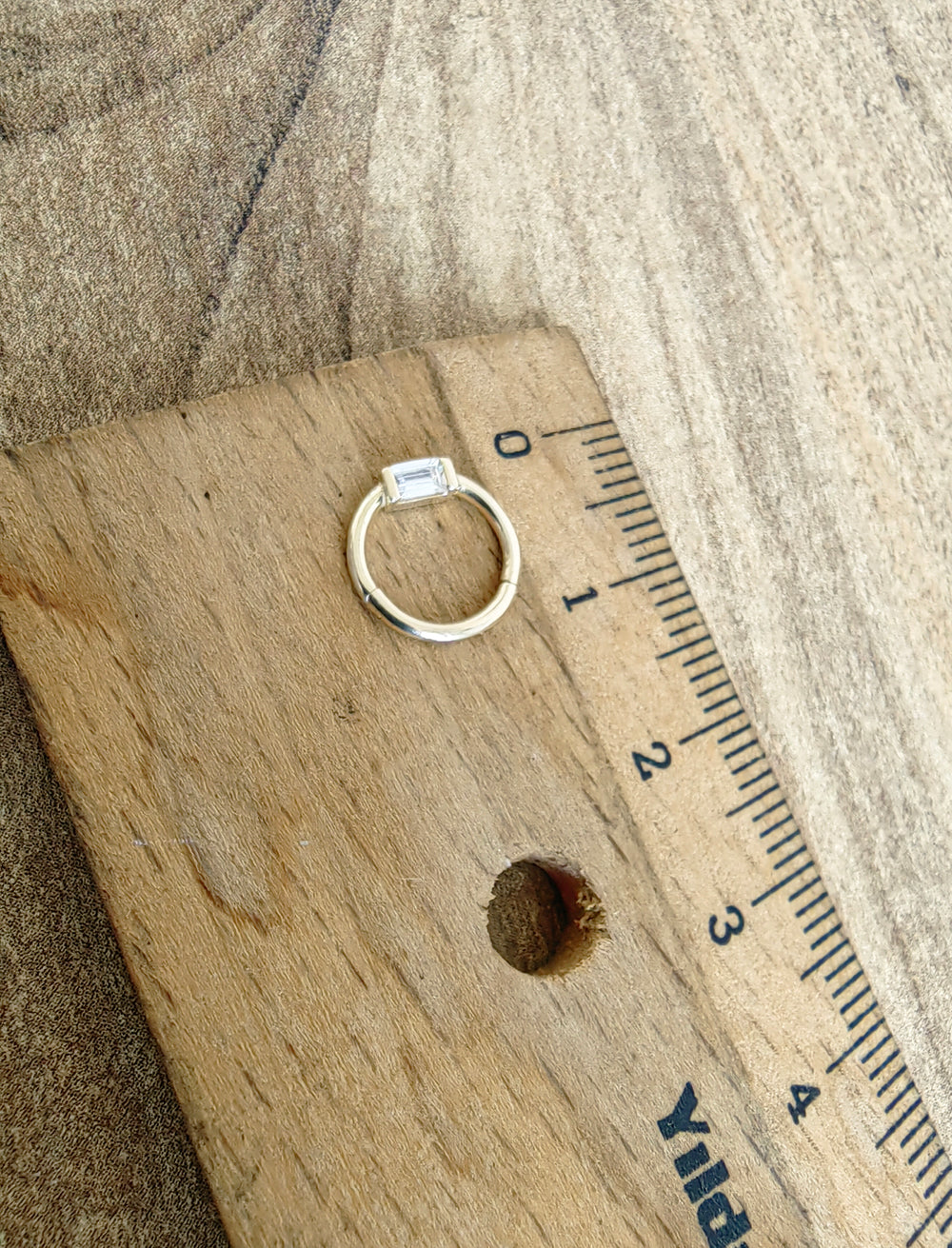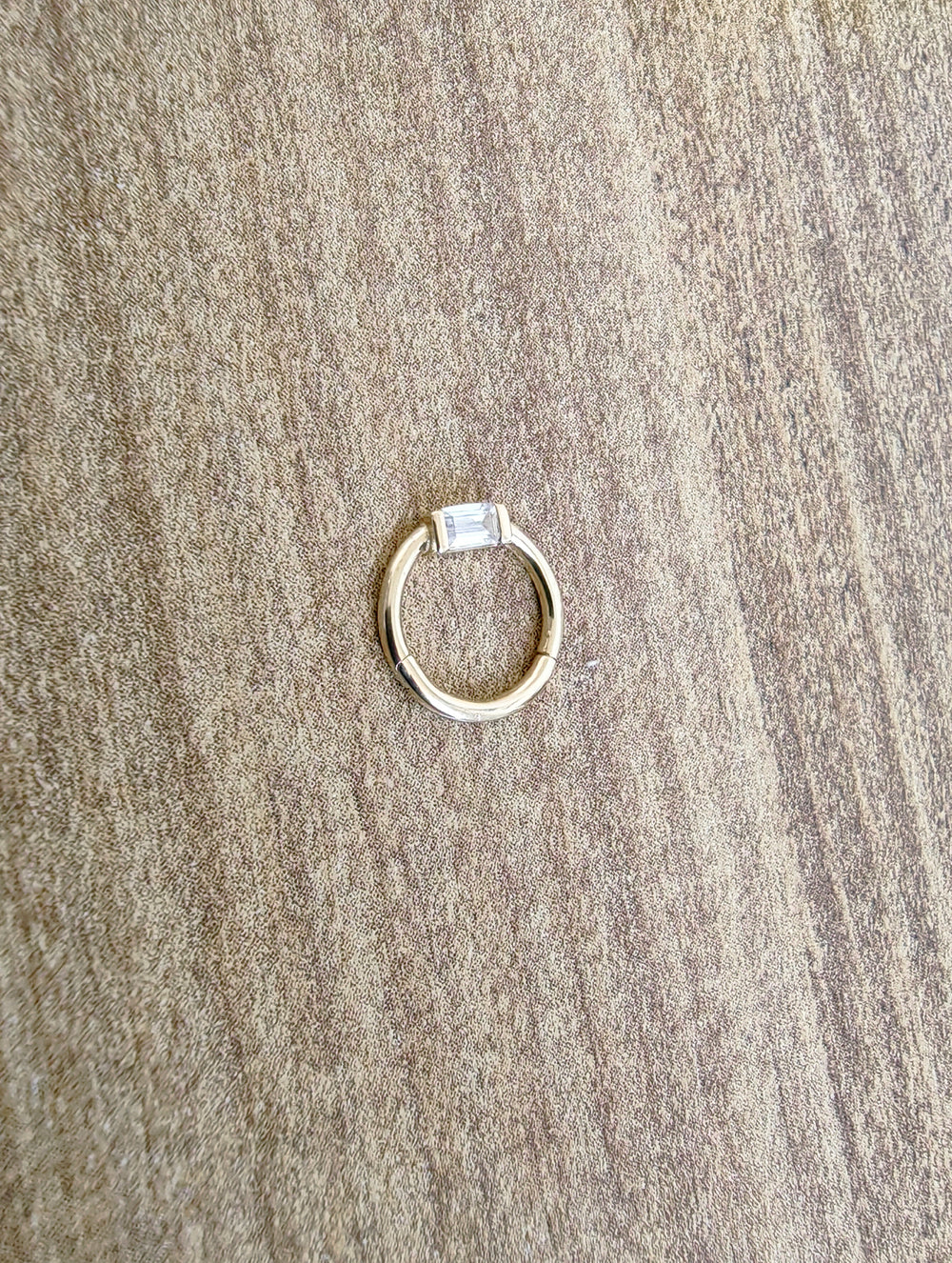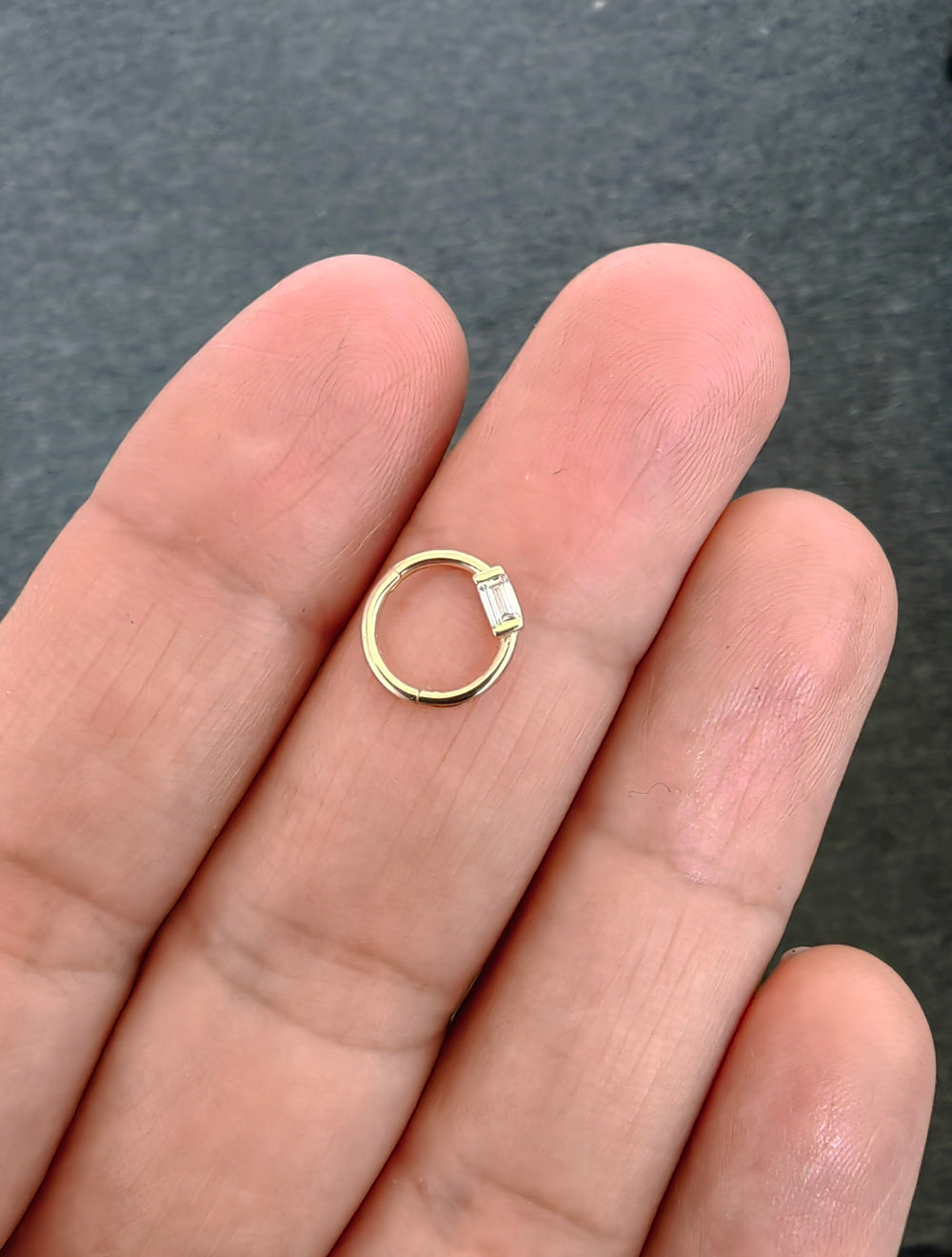 Baguette Single Stone 14k Gold Helix Piercing, 14K Solid Gold Opal Septum Ring, Cartilage Helix, Dainty Hinged Nose Ring, Jewelry for Wife, Gift for Women's Day