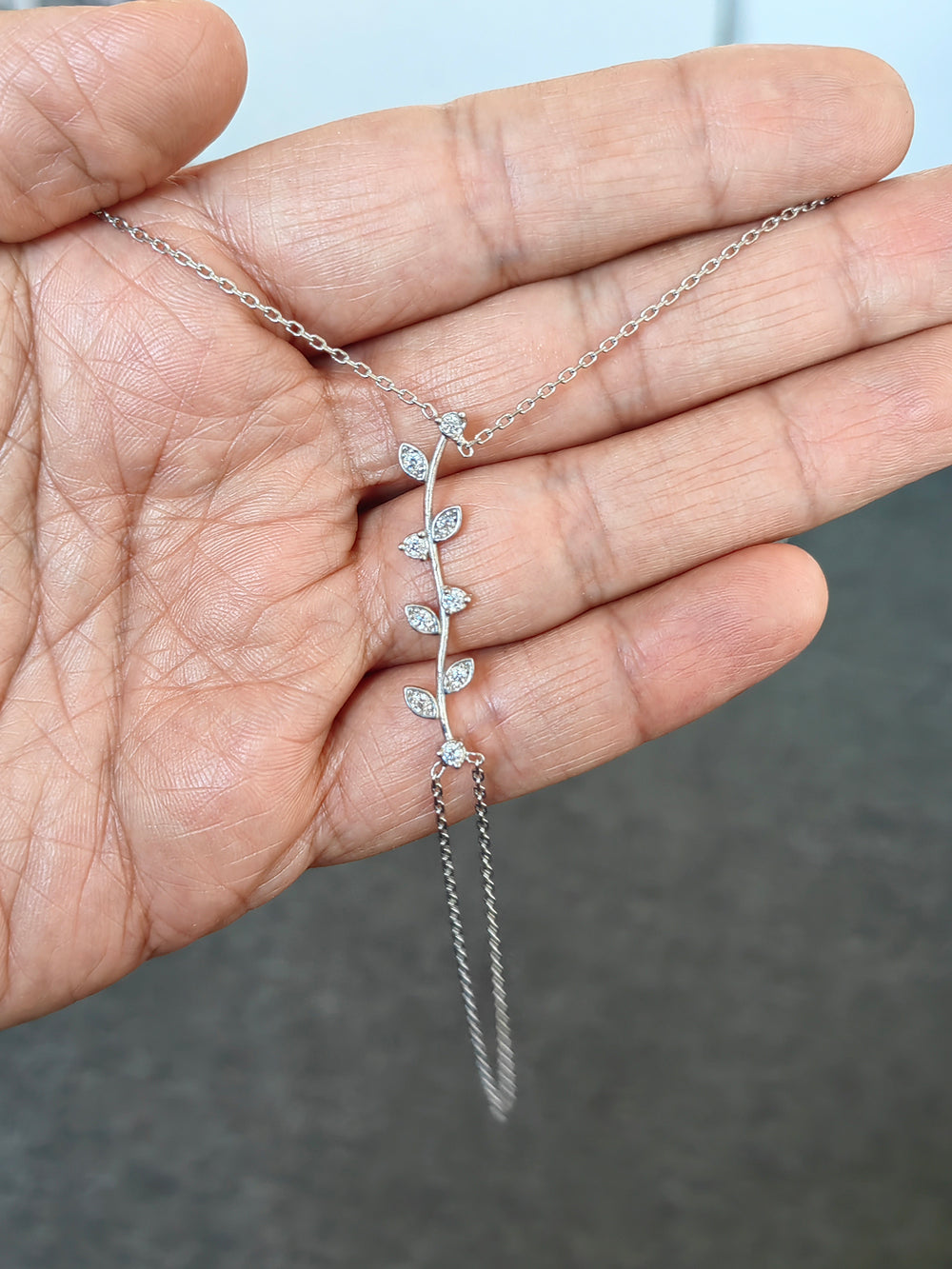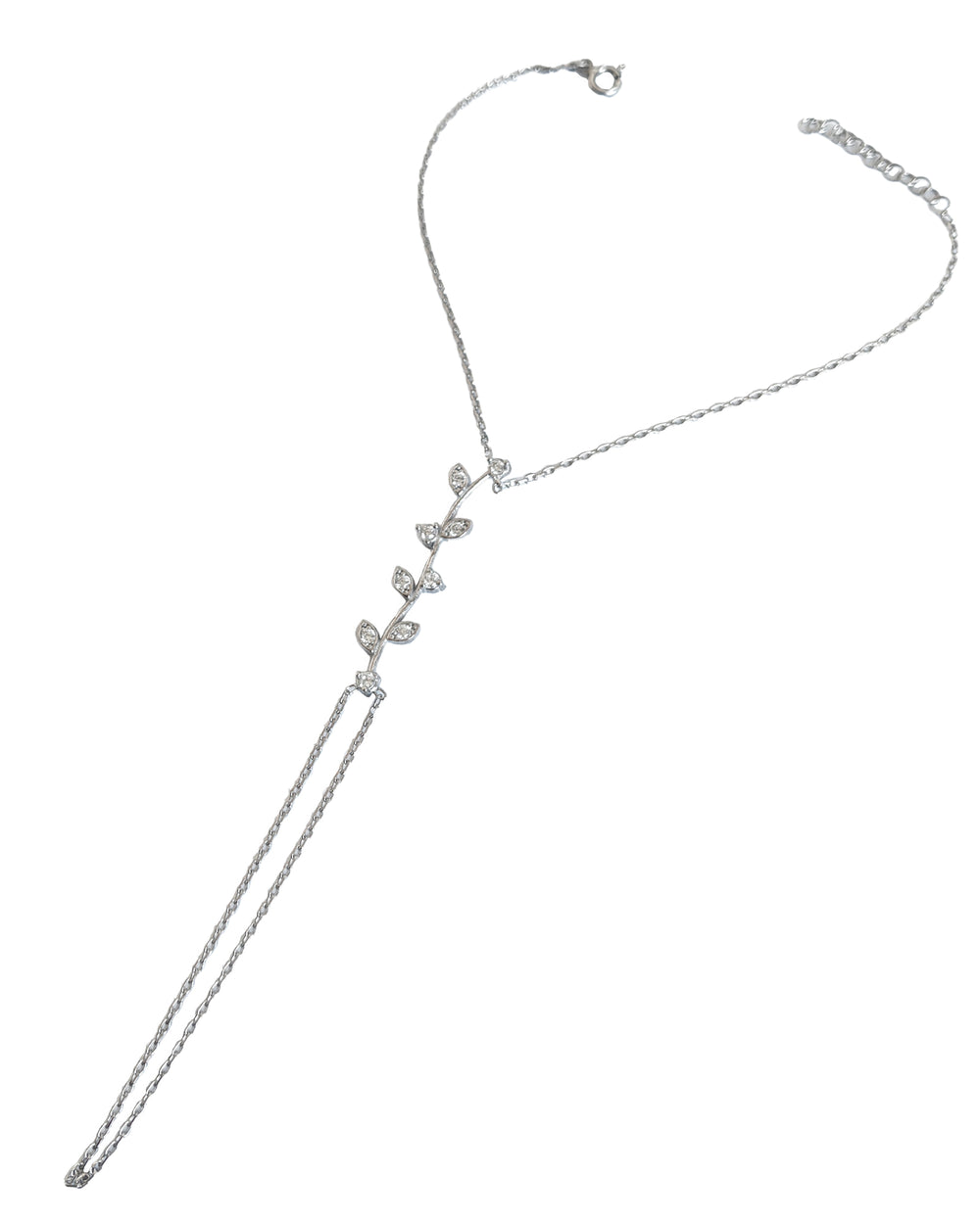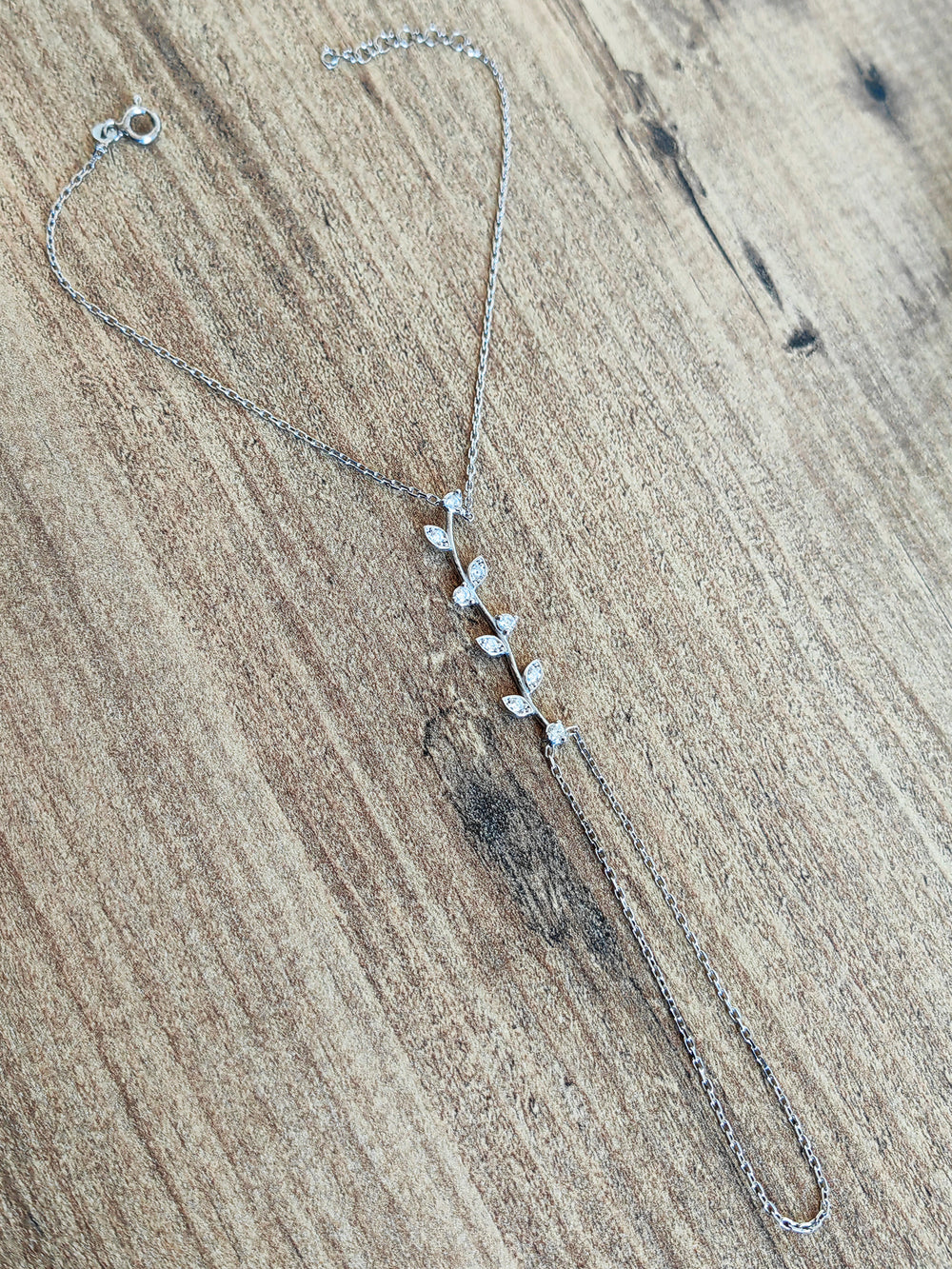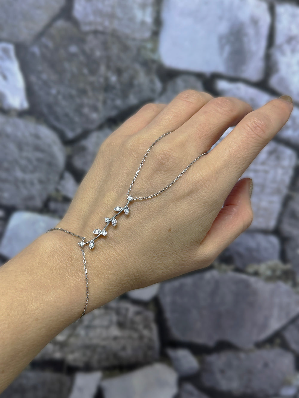 925 Sterling Silver Elegant Silver Branch Design Slave Bracelet – White Stone Hand Chain Jewelry
