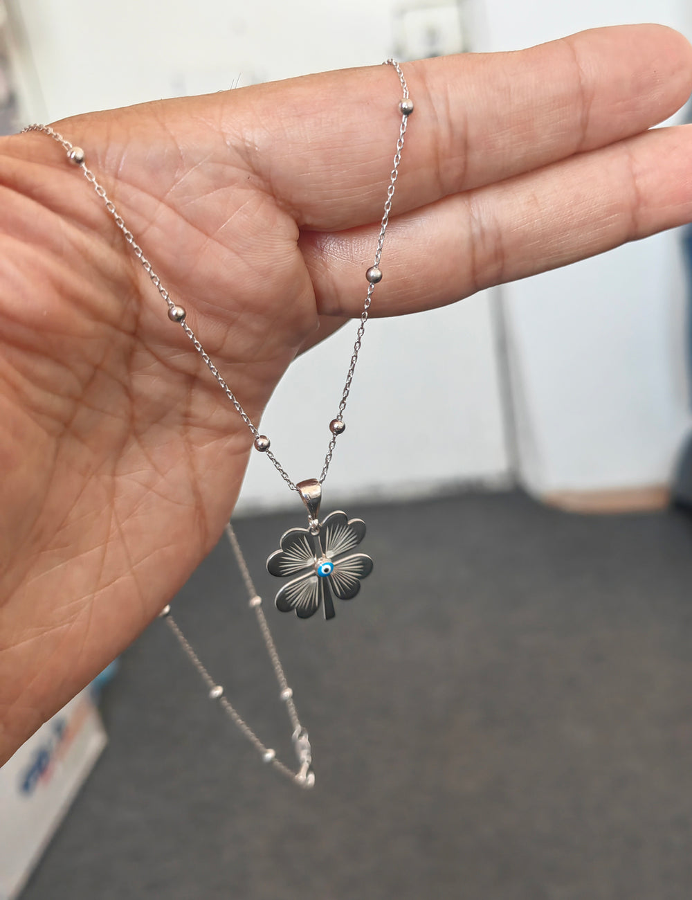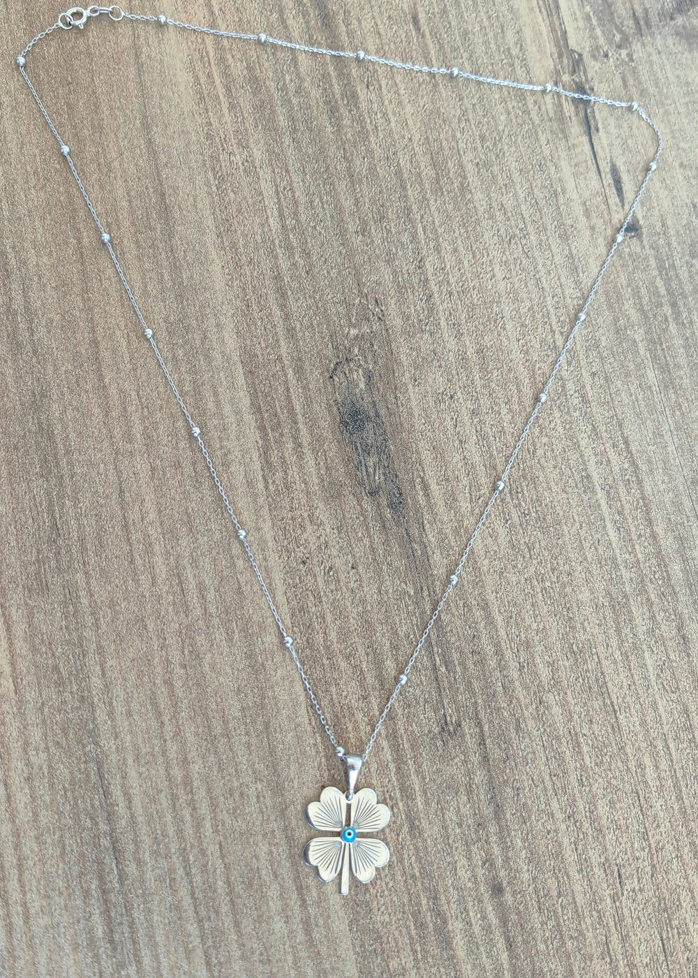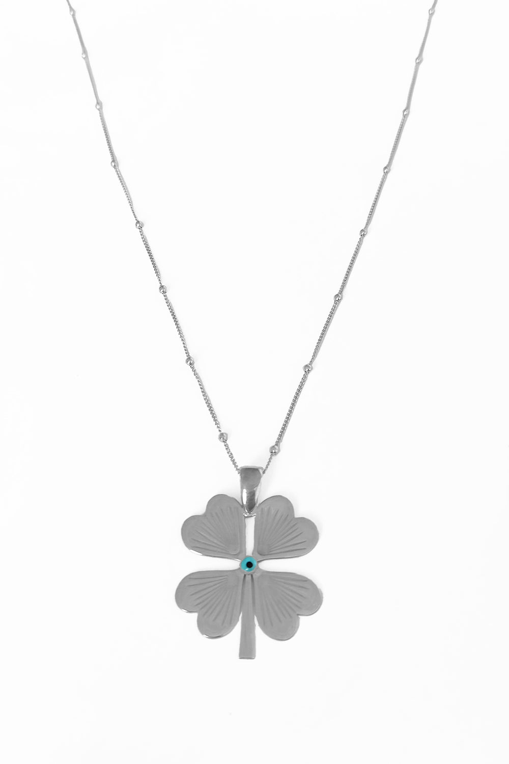 925 Sterling Silver Single Four Leaf Clover Necklace
