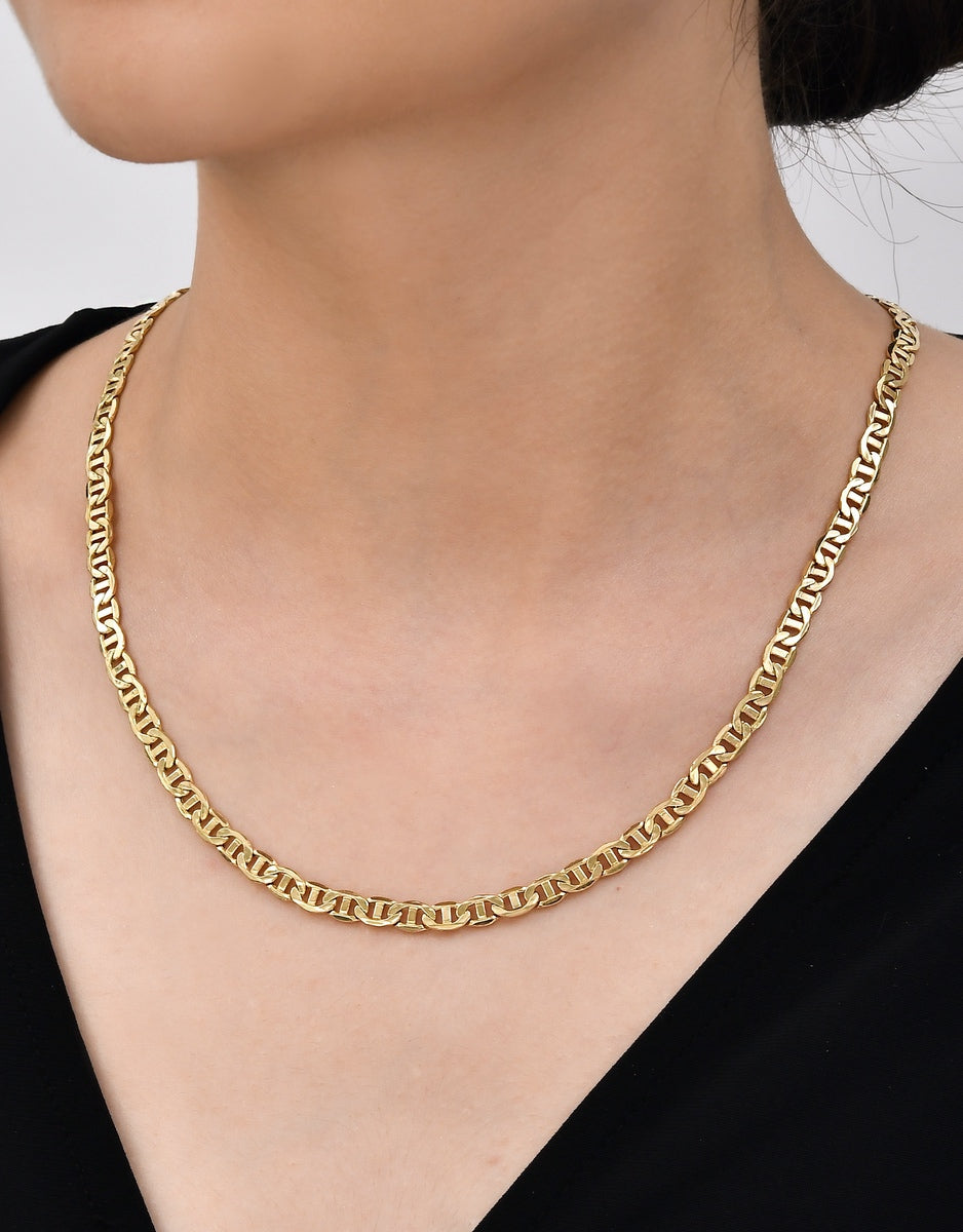 14K Gold Mariner Chain Necklace, 5.4 mm Mariner Link Chain Necklace, Anchor Link Necklace, Flat Mariner Necklace, Minimalist Stacking Necklace