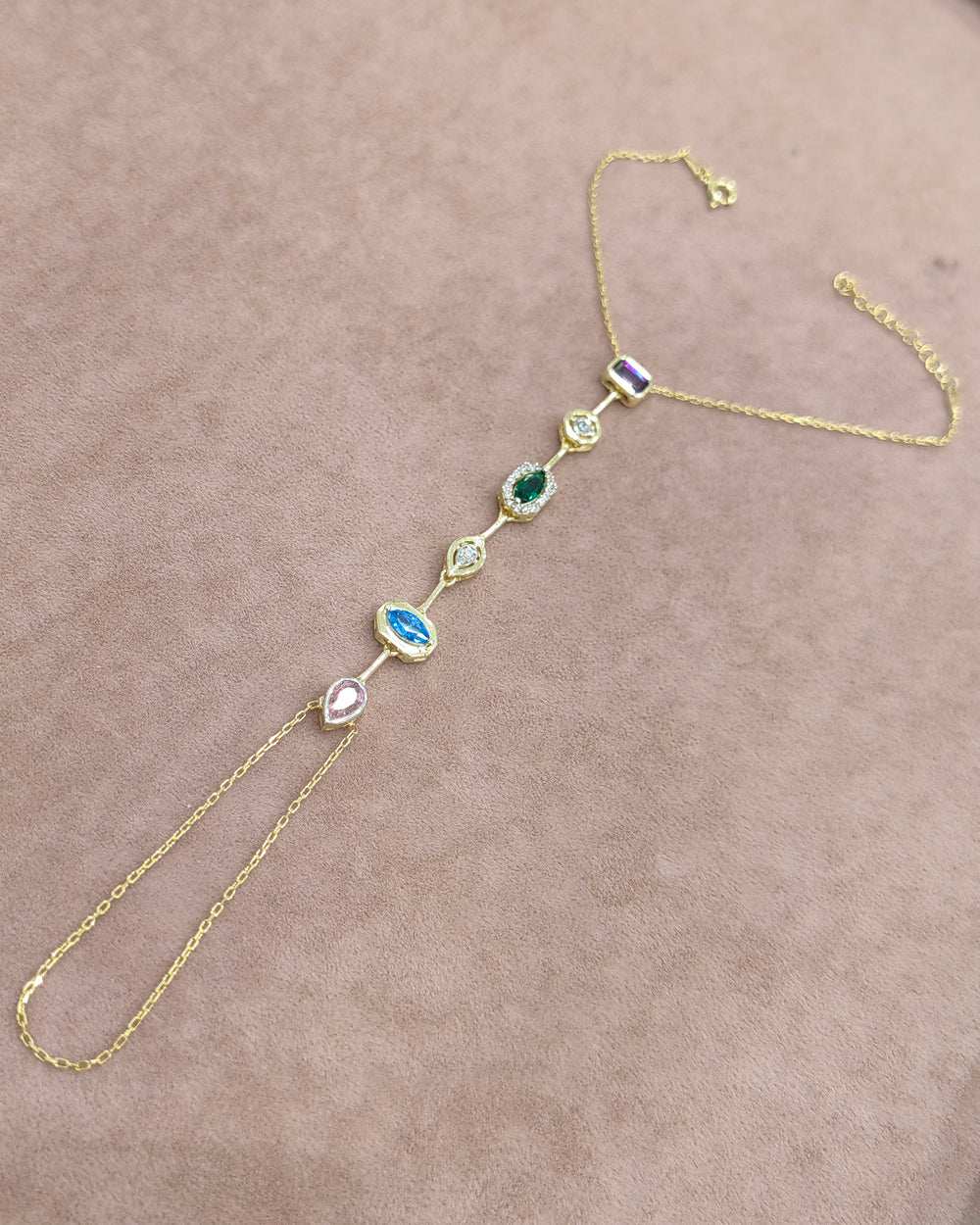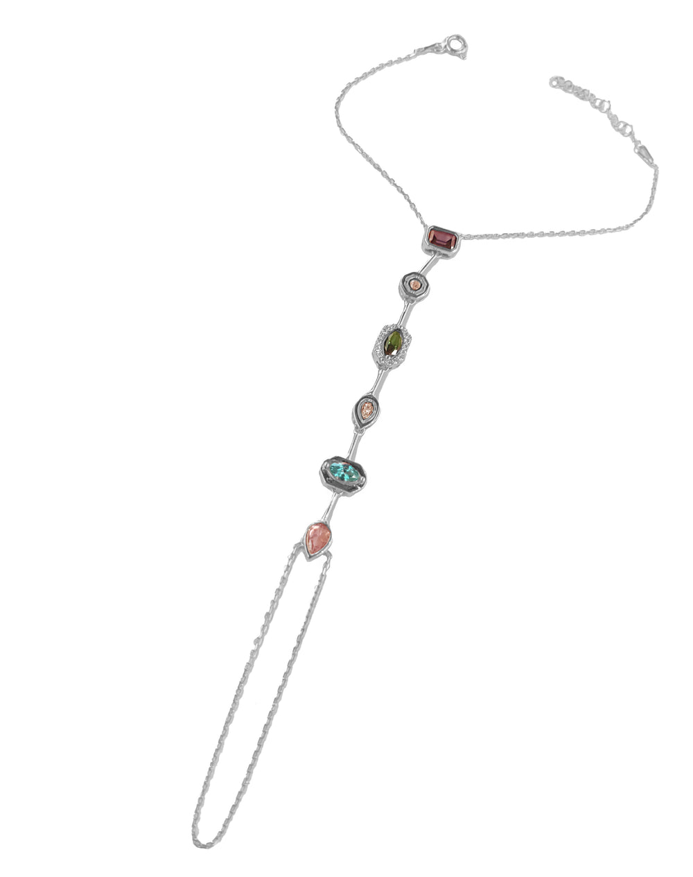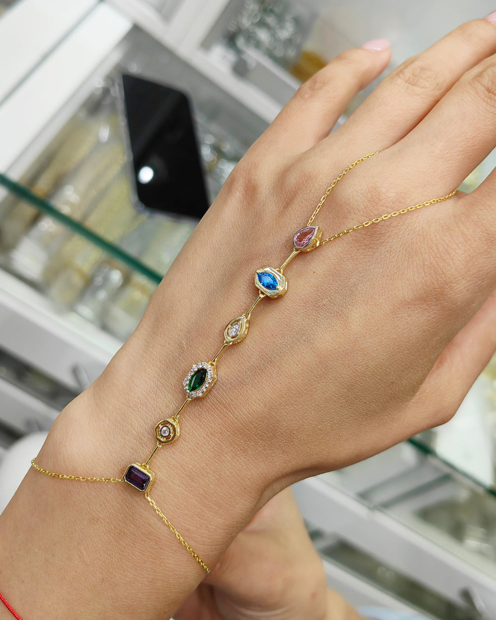 925 Sterling Silver Hand Chain Bracelet – Colorful Gemstone Slave Bracelet for Women – Handmade 925 Jewelry with Colorful Stones