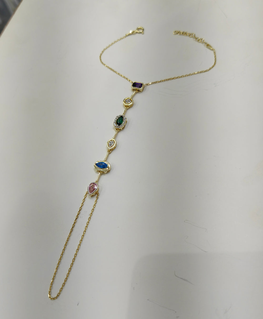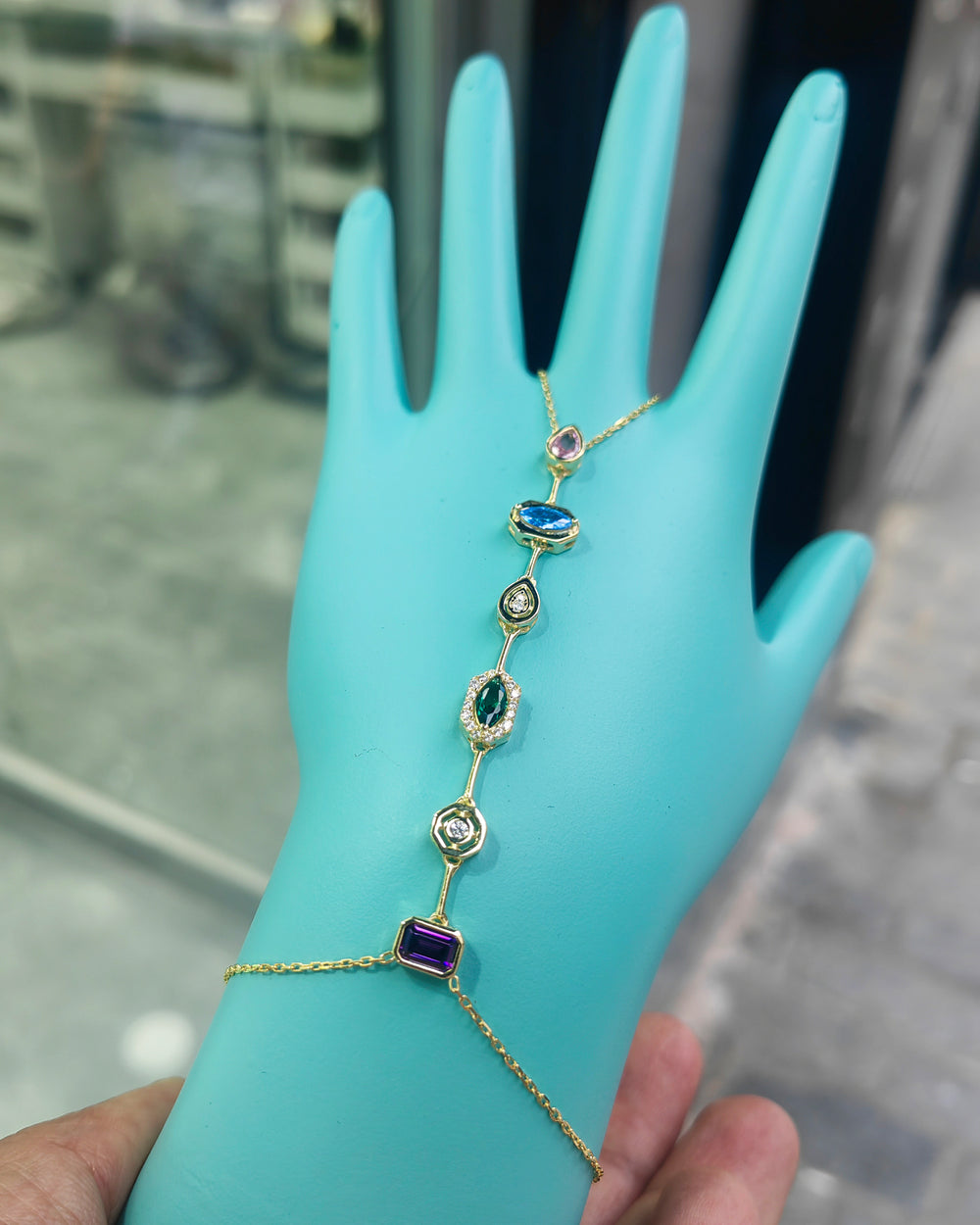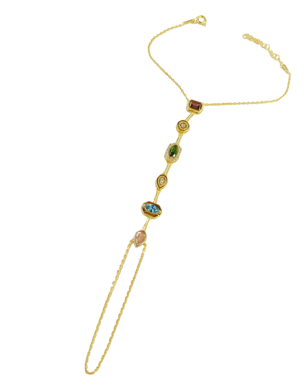 925 Sterling Silver Hand Chain Bracelet – Colorful Gemstone Slave Bracelet for Women – Handmade 925 Jewelry with Colorful Stones