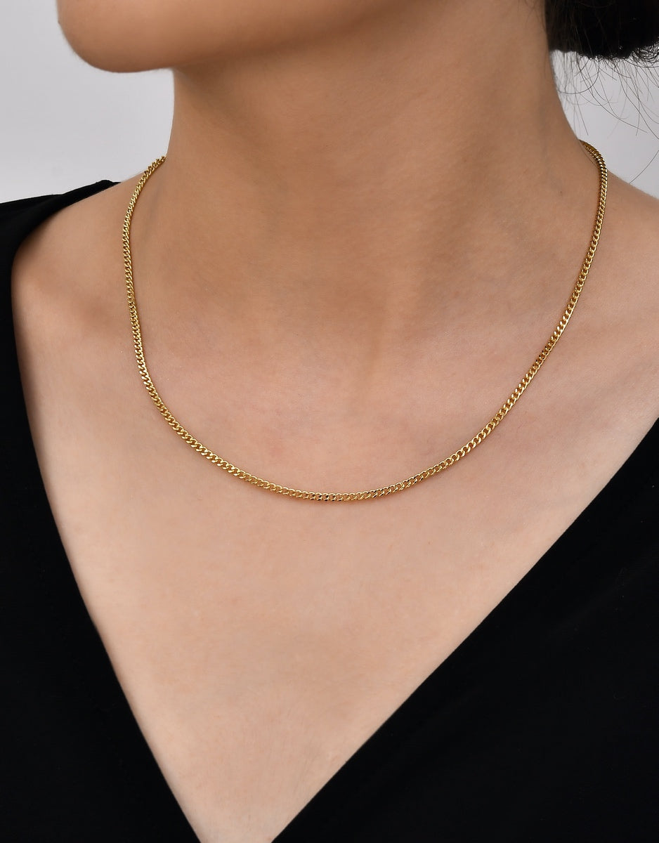 Solid 14K Gold Curb Chain Necklace, 2.20 mm Curb Cuban Link, Real Gold Chain, Ladies Gold Chain, Man Gold Chain, 14kt