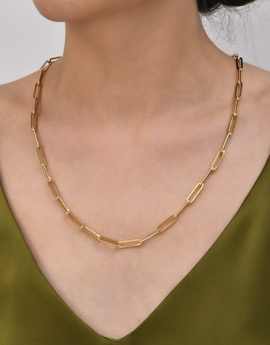 14K Yellow Gold Paperclip Chain Necklace, 14K Real Gold Paperclip Necklace 1 mm, Fancy Women Necklace, Real 14k Yellow Gold