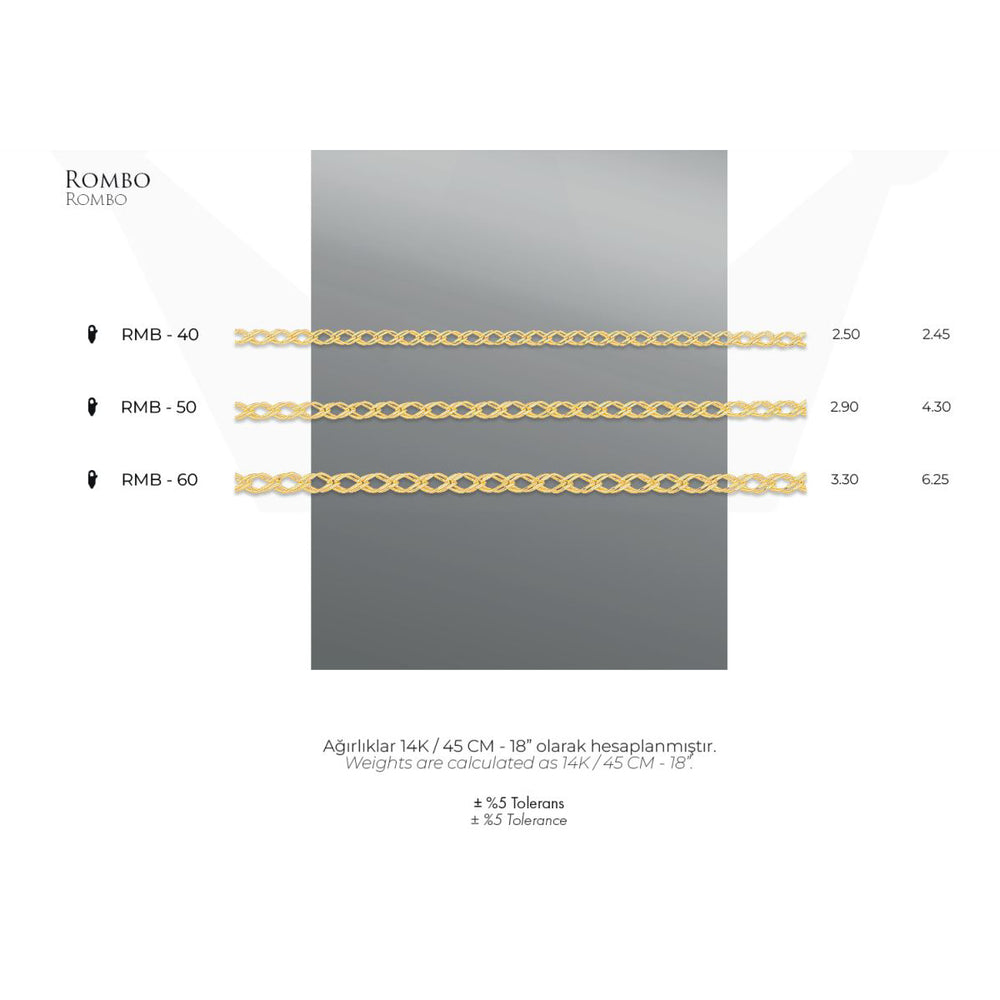 Rombo Glam Necklace - 14K Solid Gold Chain Necklace - Thickness 2.90 mm (585 Stamped), 14K Gold Sparkle Chain Necklace, Dainty Chain Choker, Glitter Chain Necklace, Gift For Her