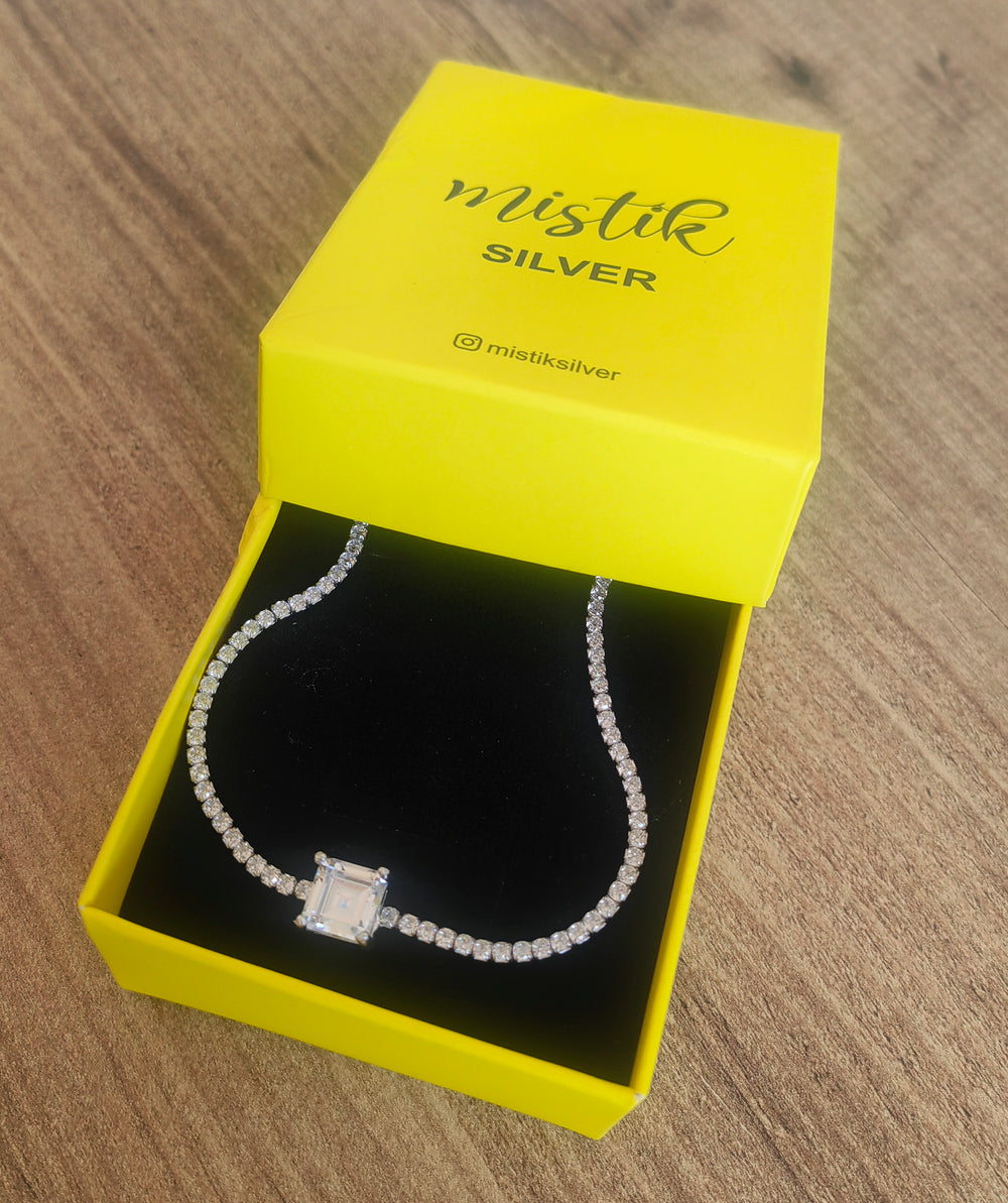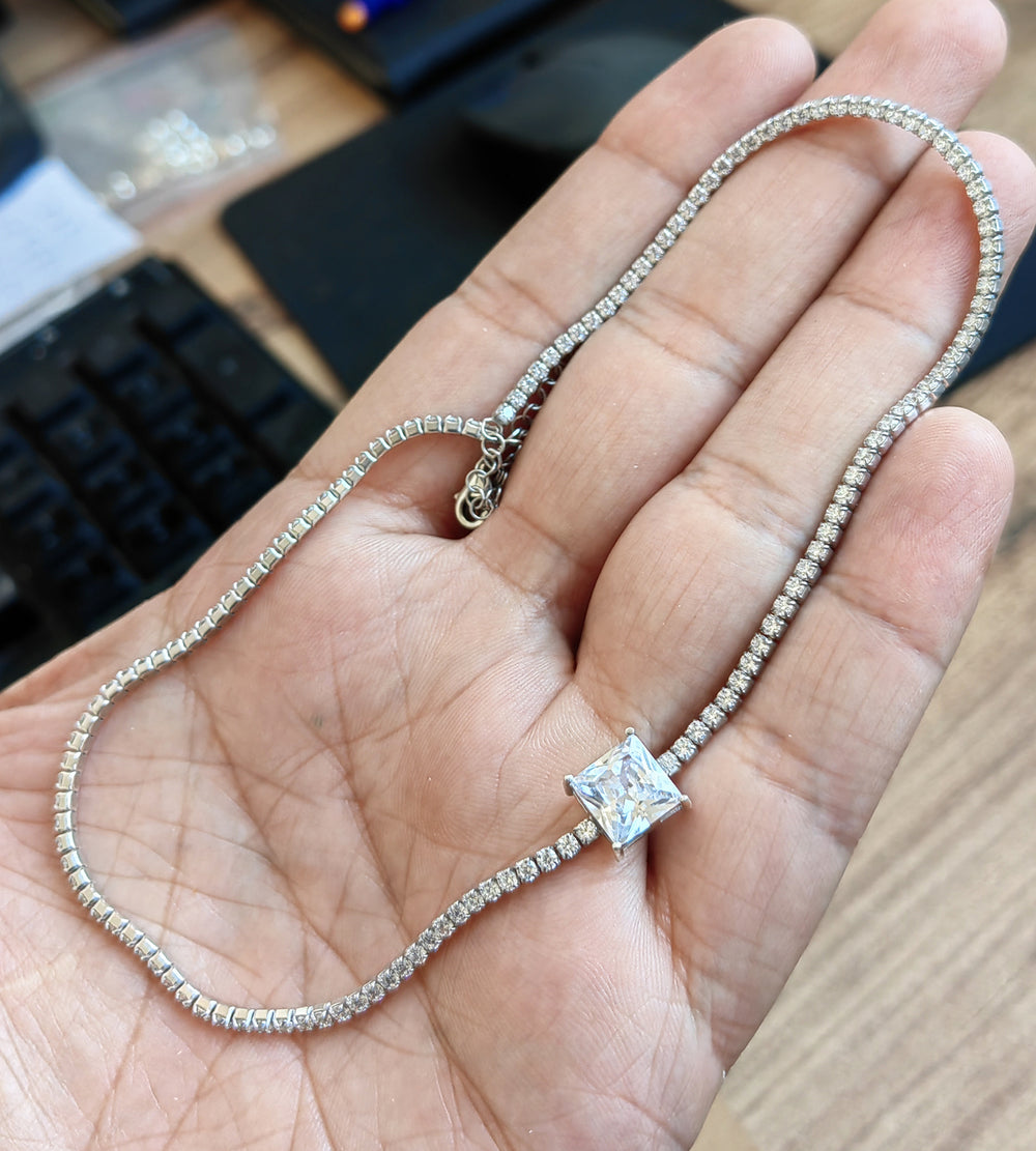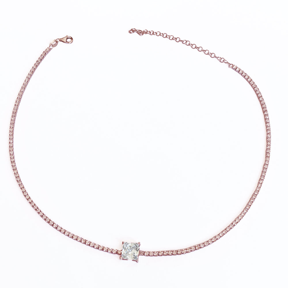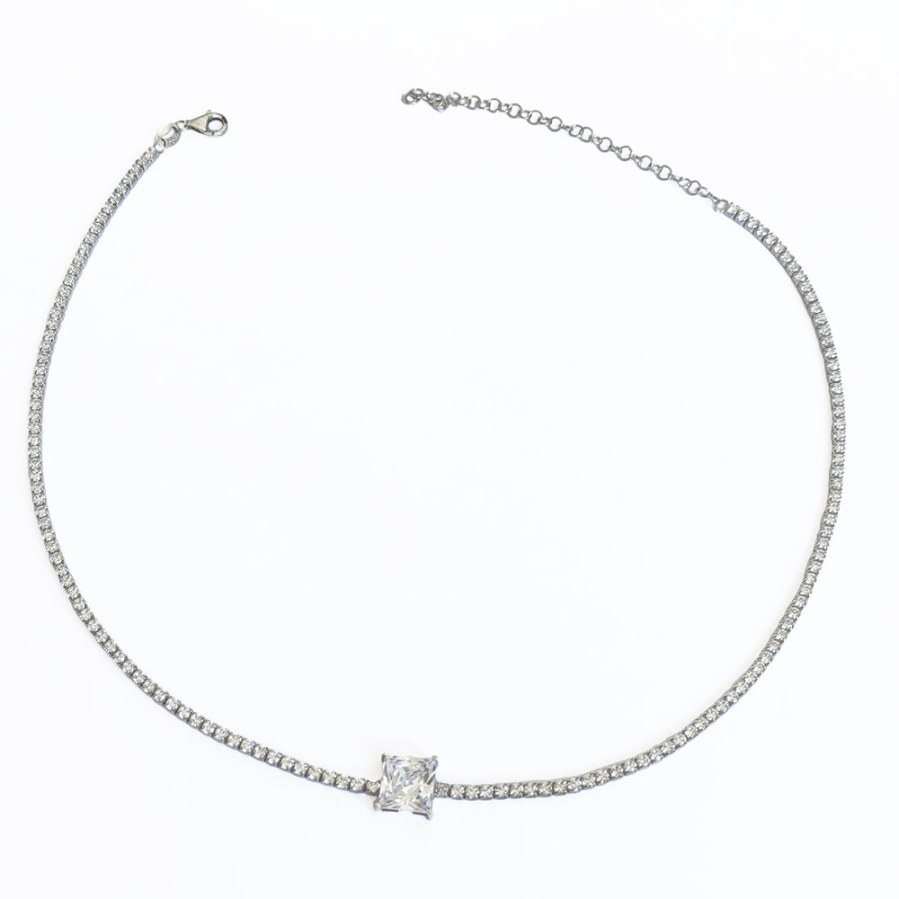 925 Sterling Silver Square Stone 2 mm Tennis Chain Necklace, Dainty Diamond Tennis Choker Necklace Gift for Anniversary