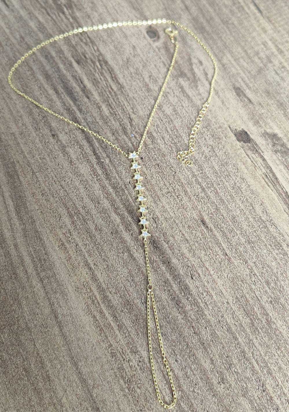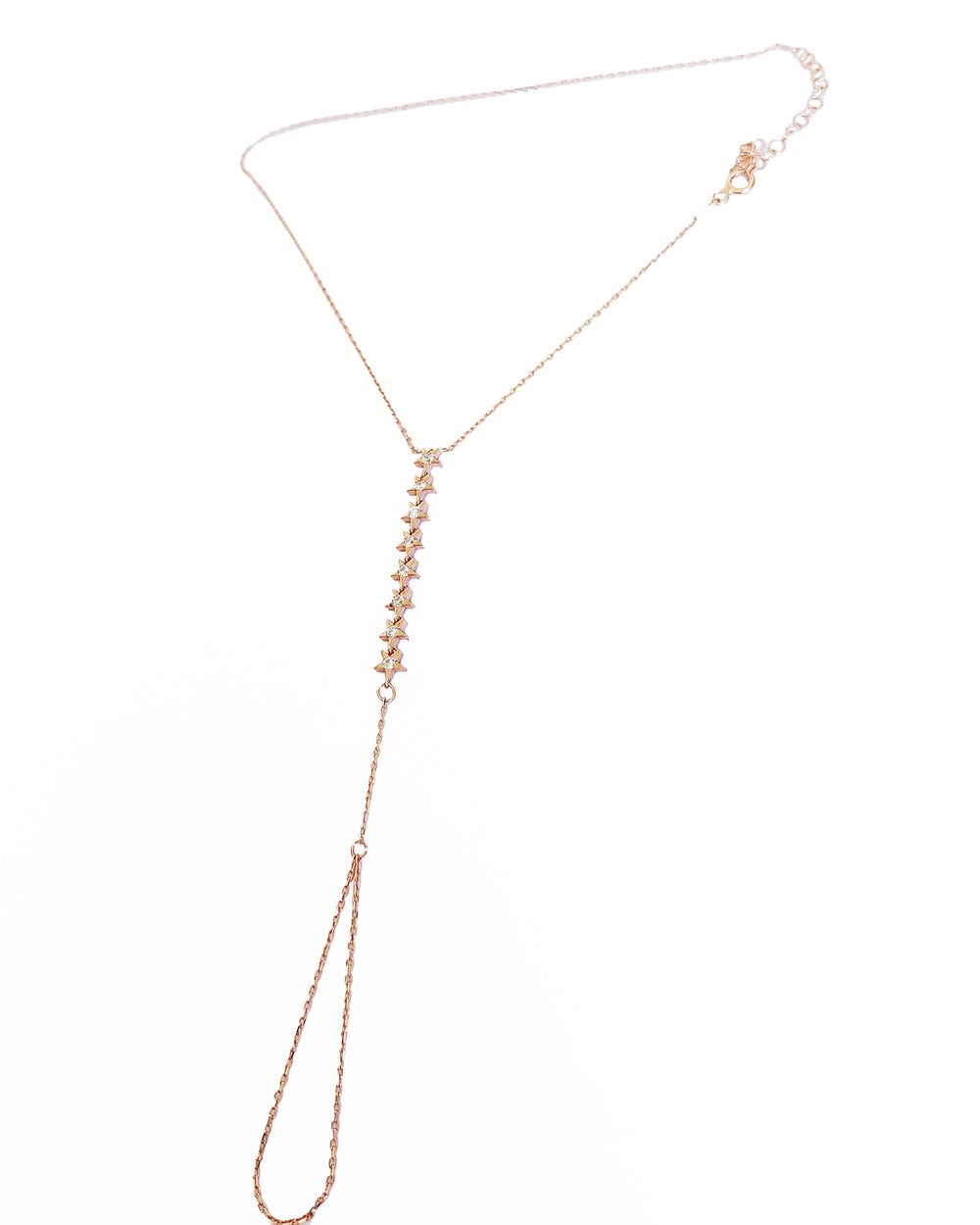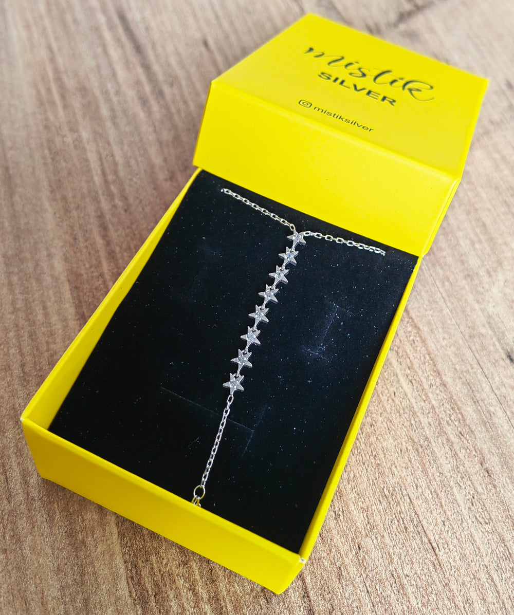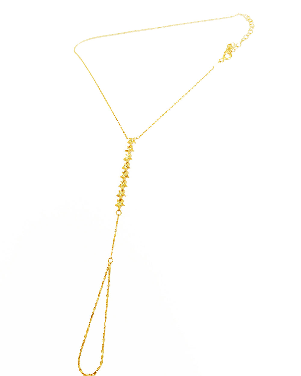 925 Sterling Silver Sword Bracelet with Sequenced Stars, Hand Chain Bracelet in 925K Silver - Dainty Celestial Slave Bracelet for Women
