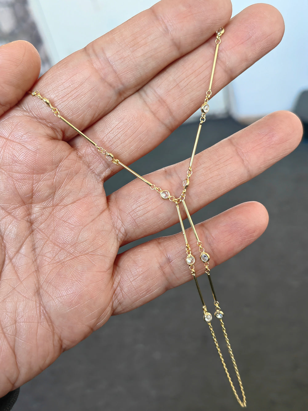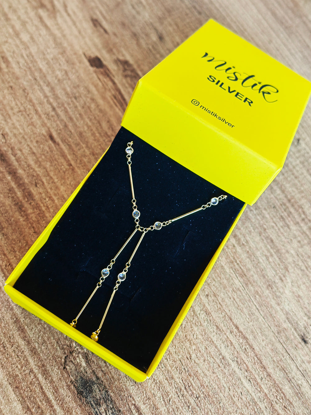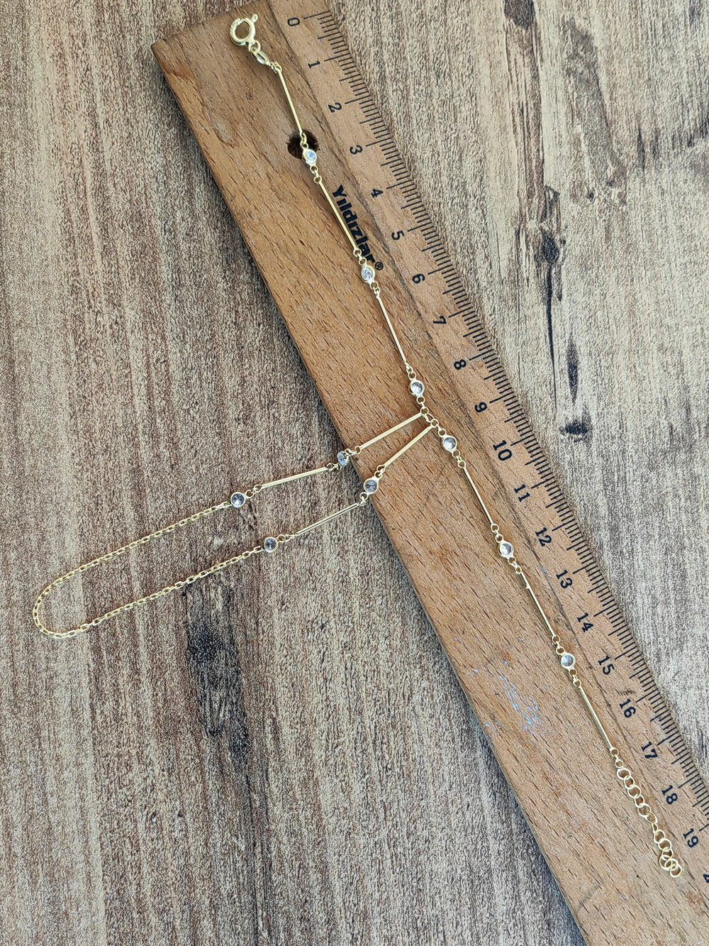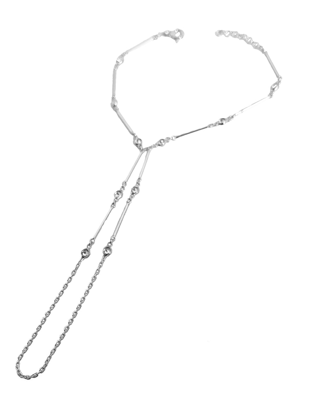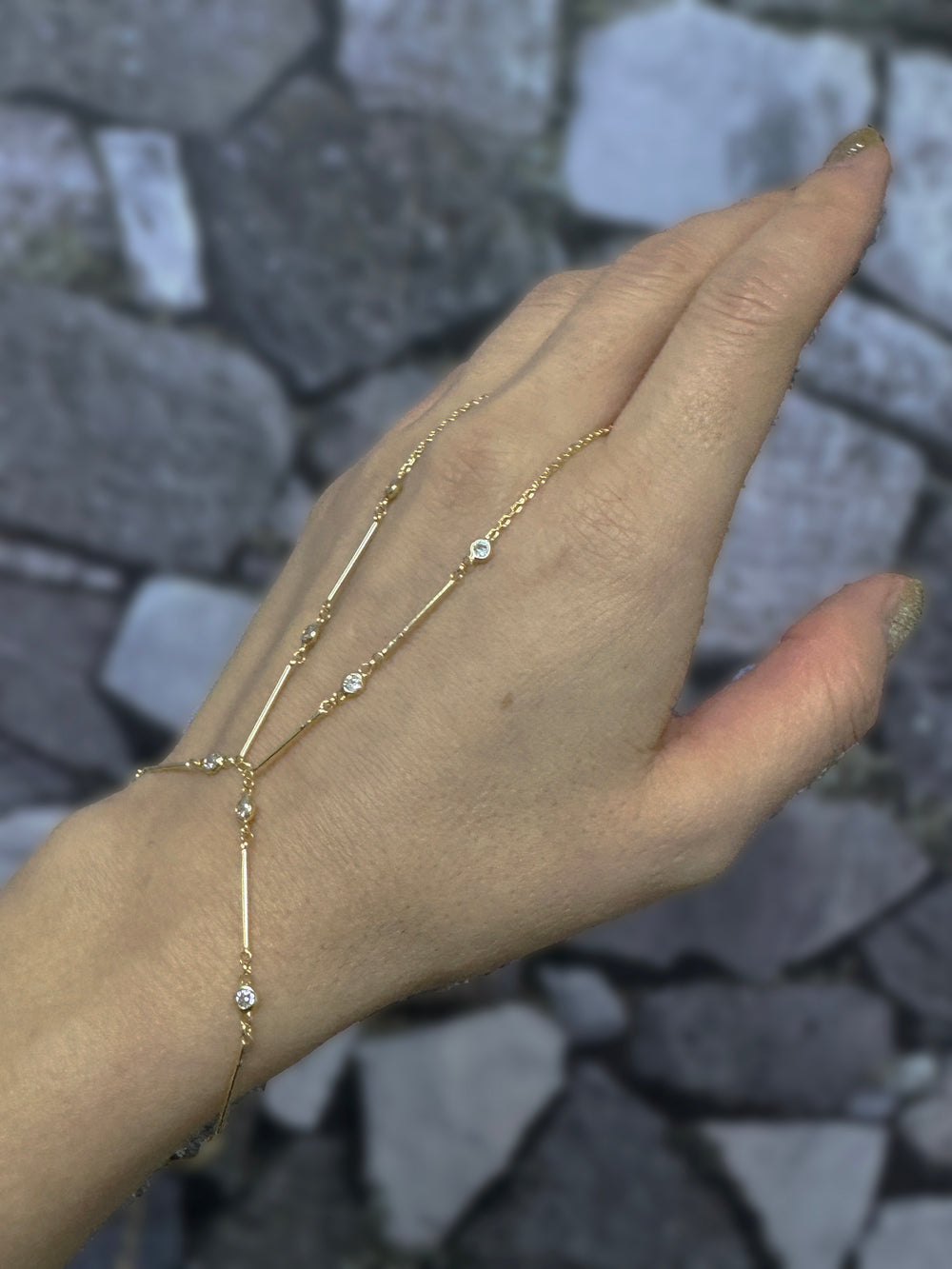 925 Sterling Silver Zircon Stone Hand Chain Bracelet – Long Bar Chain Design